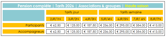 Attention : nous n'acceptons que les groupes - pas d'individuels ni de familles.