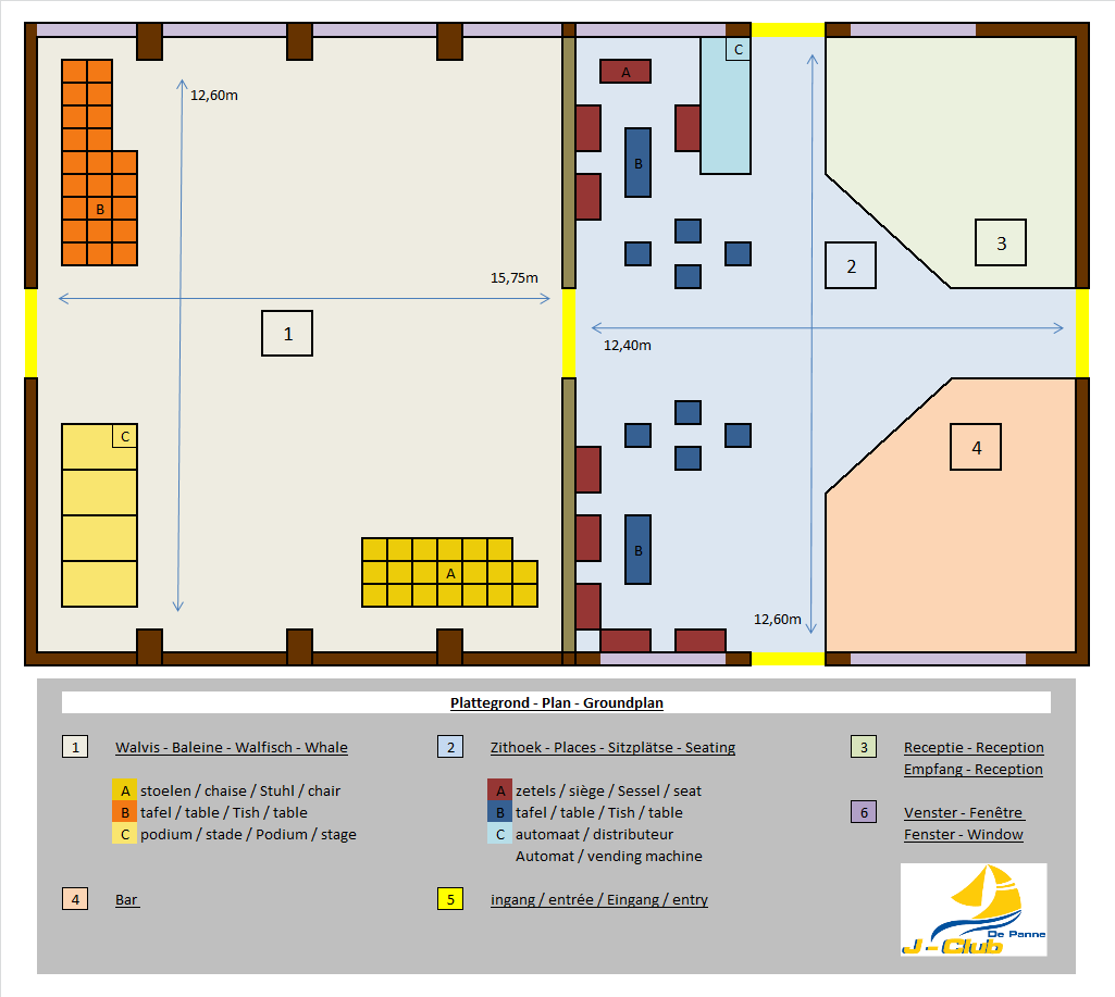 L'a.s.b.l. J-Club De Panne dispose de deux salles polyvalentes très spacieuses adaptées aux grands groupes et à leurs activités.