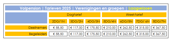 Opgelet: wij accommoderen enkel groepen - dus geen individuen of gezinnen.