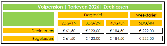 Zeeklassen tarieven | 2026 | tarieven GWP